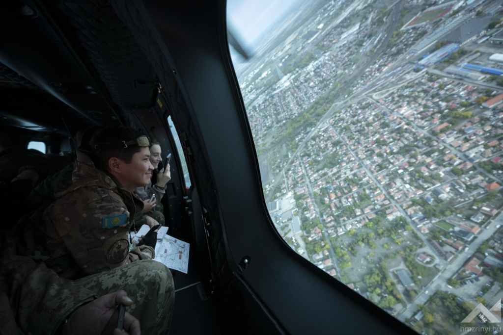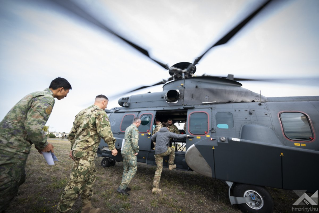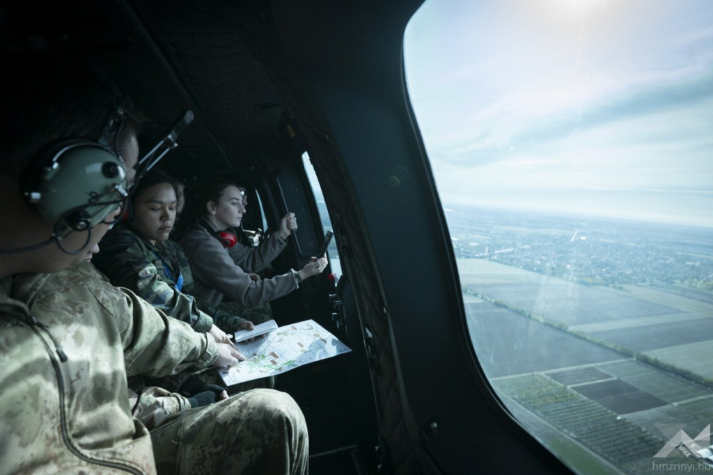 A 46. Nemzetközi Katonai Megfigyelő Tanfolyam hallgatói képzésüknek utolsó hetét töltik. Szolnokon az MH Kiss József 86. Helikopterdandárnál egy H225M helikopterrel emelkedtek a magasba, hogy a légi felderítést gyakorolják.