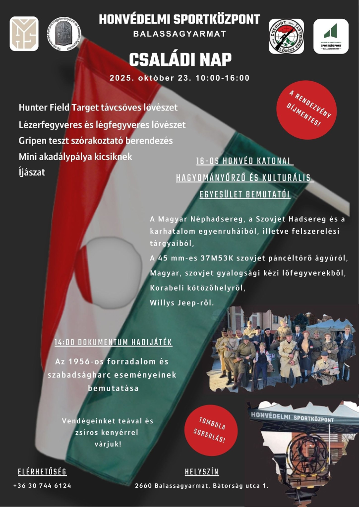 A rendezvény ingyenes, valamennyi programjára örömmel vár minden érdeklődőt október 23-án, 10.00 órától a balassagyarmati Honvédelmi Sportközpont!